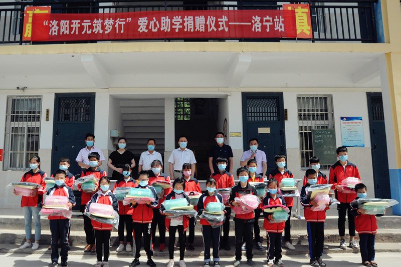 2020年527-29日,“洛陽開元筑夢行”愛心捐助活動分別在欒川秋扒鄉(xiāng)中心小學(xué)、洛寧故縣中心學(xué)校、宜陽蓮莊鎮(zhèn)政府舉行,共資助了61名貧困學(xué)生,累計捐款捐物近4萬元;