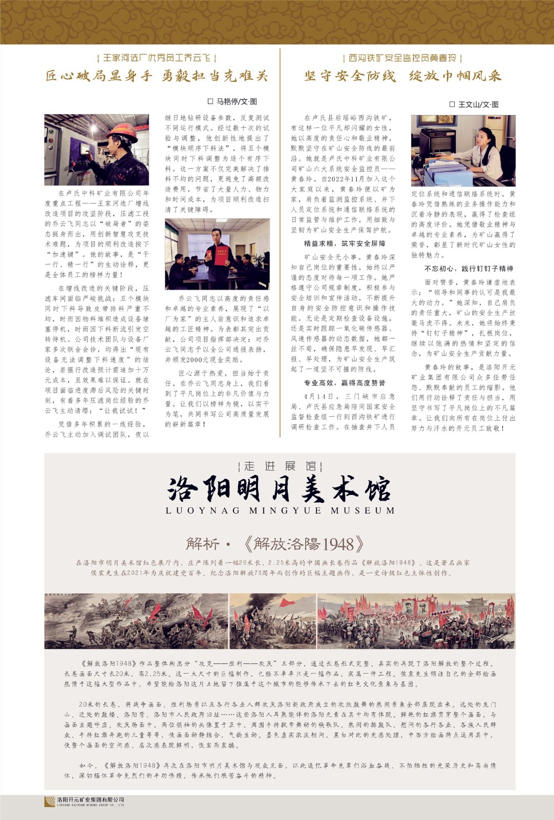 洛陽開元礦業(yè)集團有限公司簡介洛陽開元礦業(yè)集團有限公司,始成立于2006年,位于洛陽市開元大道269號。集團旗下共有五余家全資子公司,業(yè)務(wù)涉及有色金屬礦山開發(fā)、礦產(chǎn)品購銷與進出口貿(mào)易、房地產(chǎn)開發(fā)、文化藝術(shù)、企業(yè)管理與咨詢、資本投資等多個領(lǐng)域。民建河南省委委員、民建河南省委企業(yè)委副主任、民建洛陽市委委員、企業(yè)委主任、洛陽民建企業(yè)家協(xié)會會長許明月是公司創(chuàng)始人,現(xiàn)任洛陽開元礦業(yè)集團有限公司董事長。在礦業(yè)領(lǐng)域,洛陽開元礦業(yè)集團擁有多家實力雄厚的子公司:貴州開元礦業(yè)有限公司探、采礦權(quán)面積共11.33平方公里;興??h銅鑫礦業(yè)有限公司探礦權(quán)面積8.76平方公里,礦山資源潛力巨大;2021年,開元集團與盧氏中科礦業(yè)有限公司開展戰(zhàn)略合作。盧氏中科礦業(yè)有限公司專注于有色金屬的浮選、加工和銷售,擁有強大的技術(shù)支撐平臺,是集探、采、選、冶、研為一體的中大型綜合礦業(yè)企業(yè)。目前,盧氏中科王家河1000噸選礦廠已成功投產(chǎn),雙河金礦、柳關(guān)欒盧鉛鋅礦相繼順利開工,樓房銀礦與圪老灣鉛鋅礦的深部探礦重大突破,標(biāo)志著礦山版圖取得重大進展,為開元集團后續(xù)發(fā)展奠定了堅實基礎(chǔ)。在文化傳媒領(lǐng)域,洛陽市明月美術(shù)館通過豐富多樣的藝術(shù)展覽、學(xué)術(shù)研討和公共教育活動,努力打造一個集展覽、交流、教育、研究為一體的綜合性藝術(shù)平臺。此外,在金融投資領(lǐng)域,開元集團旗下的北京明峰資本管理有限公司專注于投資具有高增長潛力的優(yōu)秀企業(yè),特別是高科技、新能源、環(huán)保等新興產(chǎn)業(yè),為客戶提供個性化的資產(chǎn)配置服務(wù)。在做好企業(yè)經(jīng)營的同時,開元集團始終不忘企業(yè)的社會責(zé)任和家國情懷,以突出的愛心公益事跡,開展了一系列公益慈善活動:“民建林”公益事業(yè)通過“思源基金”“幫幫公益”線上公益平臺,與眾多愛心人士籌措資金20余萬元;資助541名貧困大學(xué)生共計270余萬元,推進“數(shù)字助力——河南AI人才培養(yǎng)”;捐款10萬元,馳援京津冀、黑龍江洪水地質(zhì)災(zāi)害……公司于2017年底被洛陽市慈善總會評為“洛陽慈善風(fēng)云榜——十大愛心集體”。洛陽開元礦業(yè)集團有限公司秉承持續(xù)發(fā)展理念,憑借多年來良好的企業(yè)信譽與經(jīng)營業(yè)績,與全國多家企業(yè)建立了良好合作關(guān)系,受到社會各界的一致好評,多次榮獲“納稅標(biāo)兵”“先進企業(yè)”“招商引資模范企業(yè)”等榮譽稱號。回望來時路,開元人勠力同心,以“闖”的精神和“創(chuàng)”的勁頭,一路披荊斬棘,踏過千山萬水;展望新未來,開元人凝心聚力,不執(zhí)于“舊”,無畏于“新”,秉承“勇于跨越,追求卓越”的企業(yè)精神,乘著國家高質(zhì)量發(fā)展新征程的東風(fēng),跨過高山,越過大海,向著集團多元化、國際化的目標(biāo),逐夢遠航,跨越前行!